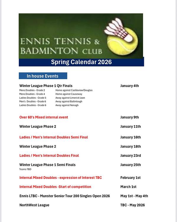 Download our mobile app to hear more about Ennis Lawn Tennis & Badminton Club.