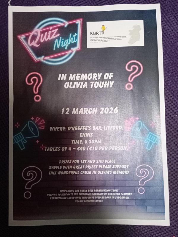 🧠✨ Quiz Night in Memory of Olivia Touhy ✨🧠