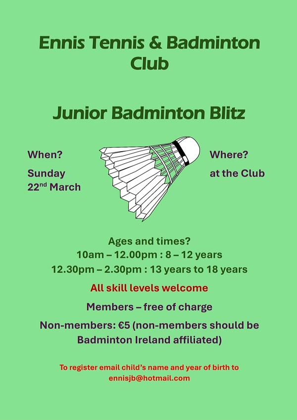Download our mobile app to hear more about Ennis Lawn Tennis & Badminton Club.