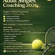 New coaching term!First phase of coaching with Anne Marie begins with singles coaching. Please...