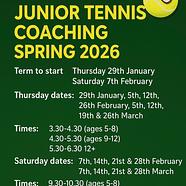 *Junior Tennis Coaching 2026*A new term of junior coaching will commence on Thursday 29th Janu...